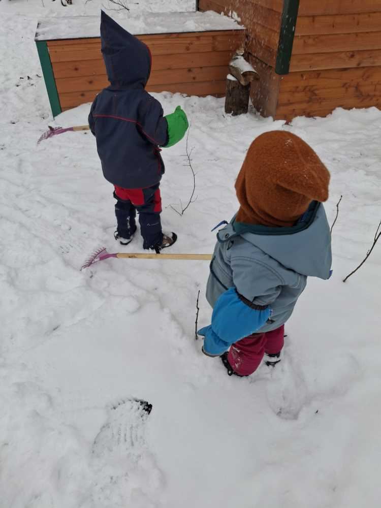 Auch wenn Schnee und winterliche Witterung nicht immer gemütlich sind, schrecken die Waldfüchse nicht vor der Kälte zurück. Gut angezogen und ständig in Bewegung bleiben alle warm. Beim Laufen, Klettern, Springen und Spielen werden Hände und Füße schnell wieder warm und die kalte Luft wirkt frisch und belebend, berichten Frau Elsner und Frau Stief.