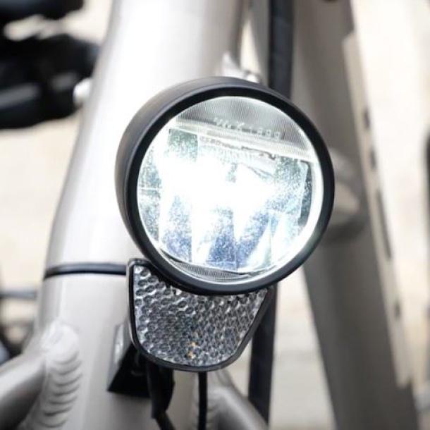 Für Touren außerhalb der Stadt oder wenn man nachts unterwegs ist, wartet die Räder mit einer Lichtanlage mit Fernlicht auf: „Das heißt, ich habe die Möglichkeit mein Licht ganz normal einzuschalten und habe dann einen Umschalter, um das Fernlicht anzuschalten“, erläutert Marc. Wenn also kein Lichteinfall durch Straßenlaternen oder Ähnlichem gegeben ist, dann ist so trotzdem ein sicherer Weg möglich.