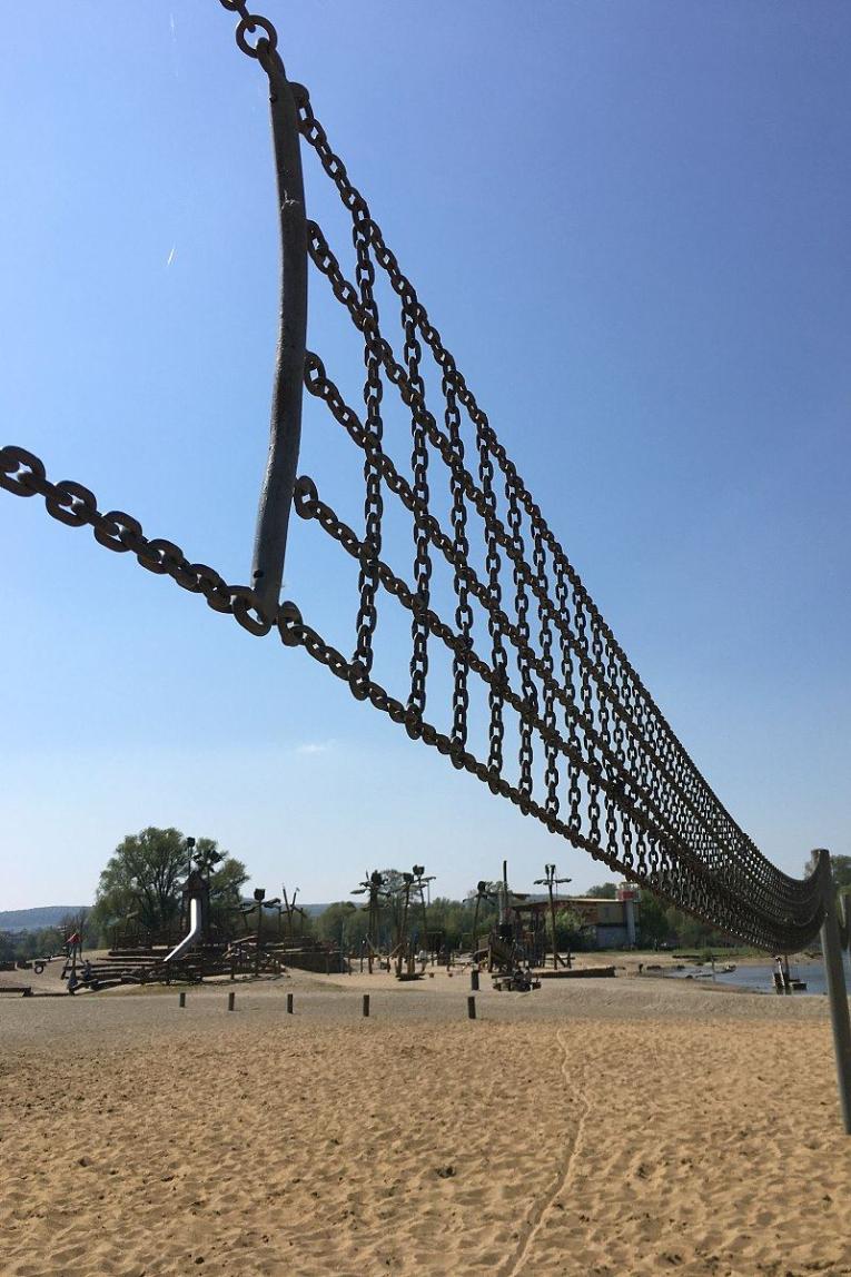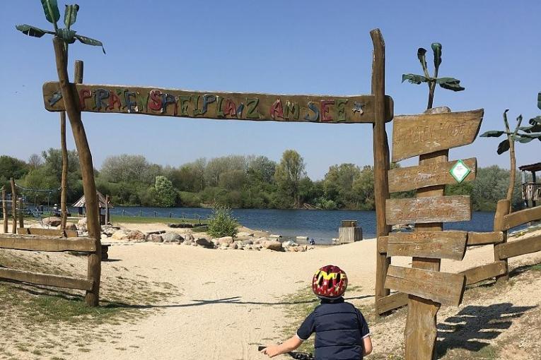 Sohn Philipp nimmt den rund fünf Kilometer langen Rundweg mit seinem Fahrrad, ich schlendere hinterher und lasse mir den Wind um die Nase wehen. Ein paar Walker mit ihren Stöcken kommen entgegen. Hundebesitzer überholen uns auf dem breiten asphaltierten Weg. Es sind noch Ferien und so sind auch einige Familien unterwegs. Keine zehn Minuten Fußmarsch und wir erreichen die große Spiellandschaft direkt am Ufer des Sees unweit der DLRG-Station. Wir stellen das Rad ab, laufen durch das große Piratenportal und lassen unseren Blick schweifen. Philipp erkundet den Aussichtsturm mit Piratenoberhaupt, klettert den Turm hinauf und ist von der langen, steilen Rutsche begeistert. Auch die anderen Kinder scheinen sich zu amüsieren. Heute ist es übersichtlich und fast erschreckend leer.