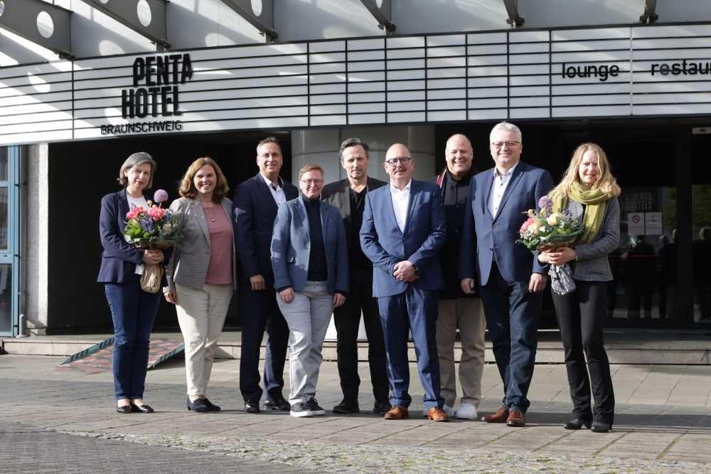 Der neue und wiedergewählte Vorstand des Arbeitsausschuss Tourismus Braunschweig e. V. mit der Geschäftsstelle (v. l. n. r.): Claudia Galaske (Geschäftsstelle), Helga Berendsen (Stiftung Residenzschloss), Matthias Harlfinger (Hotel Fürstenhof), Anke Hagenbüchner-Sobiech (Braunschweig International Film Festival), Dr. Ulf Hilger (Stadt Braunschweig, Kulturinstitut), Karsten Ziaja (Hotel Deutsches Haus), Carsten Graf (PSD Bank), Stephan Lemke (Stadthalle Braunschweig) und Nina Bierwirth (Geschäftsstellenleitung). Es fehlen Silke Ney, Dieter Werner und Uwe Schäfer. (Foto: Arbeitsausschuss Tourismus Braunschweig/Sascha Gramann)