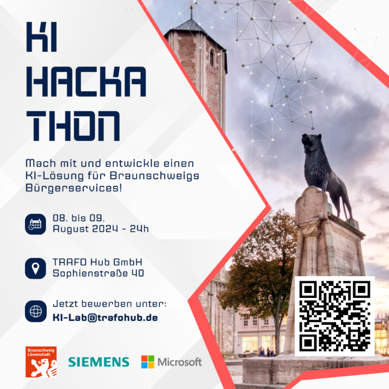 Teams von vier bis sechs Personen können sich ab sofort bis zum 31.07.2024 für den KI-Hackathon bewerben und bekommen die Möglichkeit, eine KI-basierte Lösung zu entwickeln, die den Zugang zu städtischen Dienstleistungen erleichtert und effizienter gestaltet. Hierbei können Technologien wie virtuelle Assistenten und Chatbots eingesetzt werden. Dafür können alle Daten genutzt werden, die öffentlich frei zur Verfügung stehen. Nach einer kurzen Begrüßung und Einführung am Donnerstag, 8. August 2024, haben die Teilnehmenden knapp 24 Stunden Zeit, ihre Konzepte zu erarbeiten, die sie einer Fach-Jury am Freitagmittag vorstellen. Die Jury wird von den Partnern, der Stadt Braunschweig, Siemens Mobility, Volkswagen und Microsoft, gebildet, die im Anschluss die Sieger:innen küren wird. Ergänzt wird das Programm durch ein gemeinsames Abendessen und Frühstück sowie eine Netzwerkveranstaltung nach der Siegerehrung.