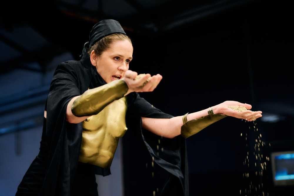 Die faszinierende Vielschichtigkeit der Geschichte und der Musik setzt sich in der Inszenierung von Isabel Ostermann fort: drei Akteurinnen stellen die Protago-nistin dar – eine Sopranistin, eine syrische Vokalistin und eine Schau-spielerin. Diese »Arbeitsteilung« unterstreicht nicht nur den Facetten-reichtum der Figur und der Story, sondern ist auch Ausdruck der Vielstimmigkeit des Neuen Musiktheaters.