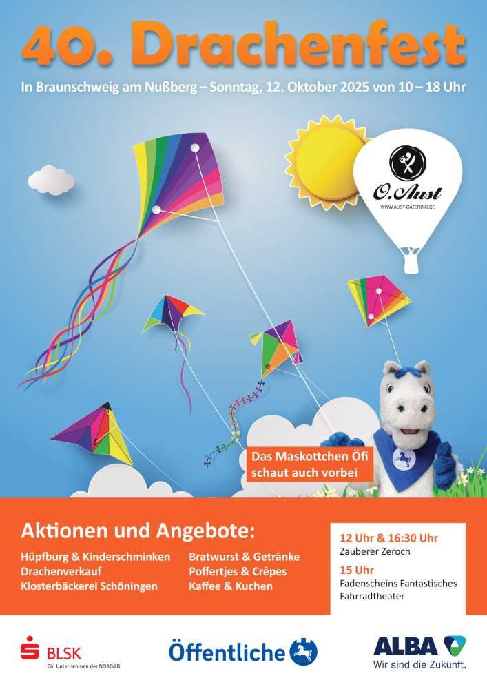 Dank der Organisation durch Olaf Aust Veranstaltungsmanagement und der Unterstützung der Öffentlichen Versicherung Braunschweig, der Braunschweigischen Landessparkasse sowie ALBA Braunschweig kann das Drachenfest erneut stattfinden. „Das Drachensteigen ist ein echtes Herbst-Highlight. Wir freuen uns, dieses besondere Familienfest an einem der schönsten Orte Braunschweigs zu feiern“, sagt Alexander Wicher vom Eventteam. „Wir hoffen auch dieses Jahr auf gutes Wetter und ausreichend Wind – in der Vergangenheit sorgten Sonne und milde Temperaturen für viele Besucher, auch wenn der Wind manchmal zu wünschen übrig ließ.“