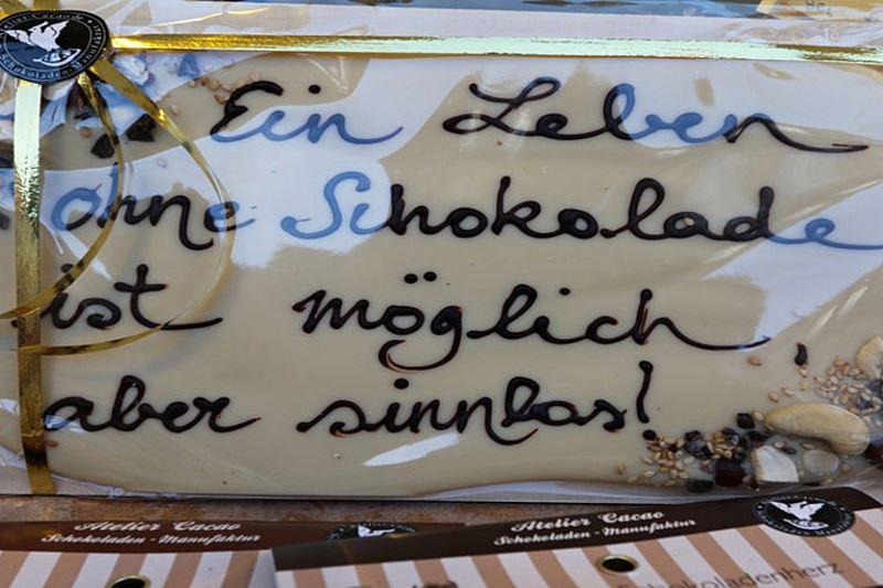 Auch dieses Jahr werden wieder rund 40 Chocolatiers, Konditoren und Schokoladenhersteller für ordentlich Speichelfluss und genießerische Seufzer sorgen! Die Besucher und der ein oder andere "Schokoladiger" kann hier ungehemmt seiner Leidenschaft frönen und sich von jeder Menge Schokokuriositäten wie Schokobier, Schokomassagen oder Schokopizza überraschen lassen.