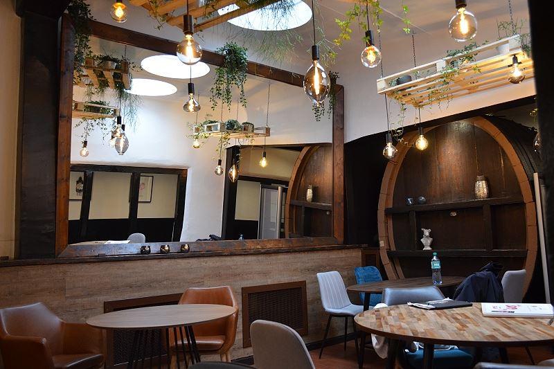 Frisch und grün ist mein erster Eindruck. Nachdem man die Bar direkt hinterm Eingang passiert, tritt man in das Herzstück des Lokals: den Gastraum. Stylish eingerichtet und mit vielen Leuchten und schlichten Accessoires ausgestattet, bekommt der urige, in die Länge gezogene Raum mit den alten Balken ein gemütlich-modernes Ambiente. Einige der Möbel sind selbstgebaut. Man spürt die Liebe zum Detail. Und es wird noch besser: am Ende des Lokals liegt der Kastaniengarten! Versteckt am Hinterausgang gelegen befindet sich ein heller, geräumiger Biergarten mit einer alten Kastanie im Zentrum. Hier kann man es sich auf einer Holzterrasse mit einem kühlen Getränk aus der Region auf an der frischen Luft bequem machen. Eine grüne Oase, mitten in der Stadt. Perfekt für einen Nachmittagsplausch oder ein Abendessen in einer entspannten Atmosphäre.