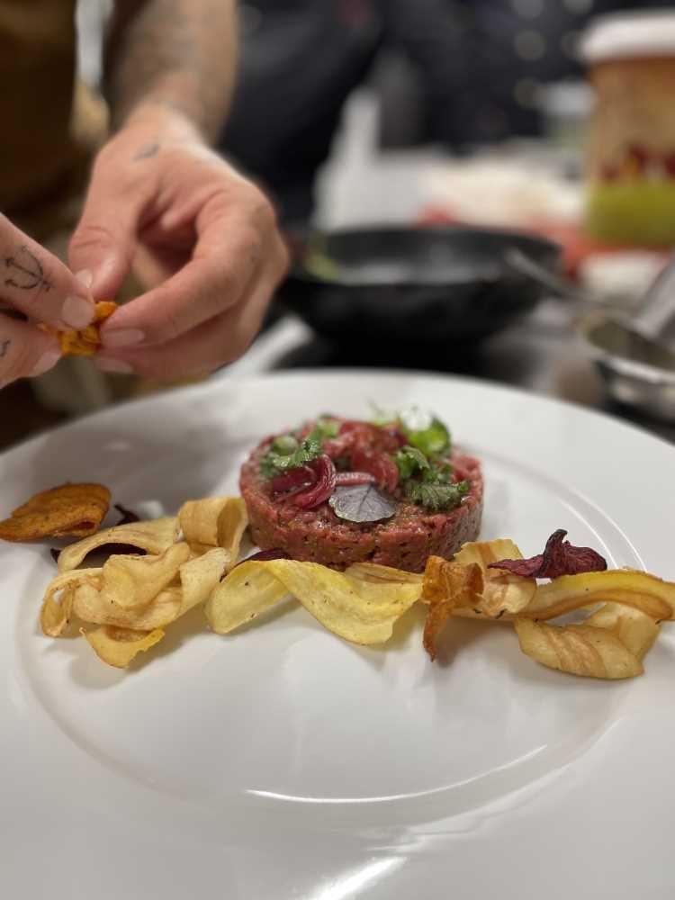 Bei der Zusammenstellung der passenden Weine hatte indes Mario Etmanski, Inhaber der Weinfachhandlung Vin-Nett aus Lehre, freie Hand. Dazu der Weinexperte: „Die Zusammenarbeit mit Monsieur Claude ist definitiv eine Besondere, das große Vertrauen bei der Auswahl weiß ich definitiv zu schätzen.“ Dabei war es Etmanski wichtig, „dass wir den französischen Weinen einen gebürtigen Raum geben.“ Gleichwohl sollte die Auswahl mit Weinen in Einklang gebracht werden, die etwa auch eine jüngere Zielgruppe ansprechen oder auch Interessierte, die nur selten des Weingenusses frönen.