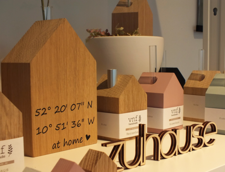 Sie müssen meiner Philosophie und meinem Motto entsprechen! Ich würde weder Dinge komplett aus Plastik noch etwas sehr buntes oder schrilles annehmen. Bei den deutschen Manufakturen kenne ich auch die Leute oder die Geschichte dahinter, hier wird auf die gleichen Maßstäbe geachtet, die mir wichtig sind. Dazu kommt natürlich der Nachhaltigkeitsgedanke.